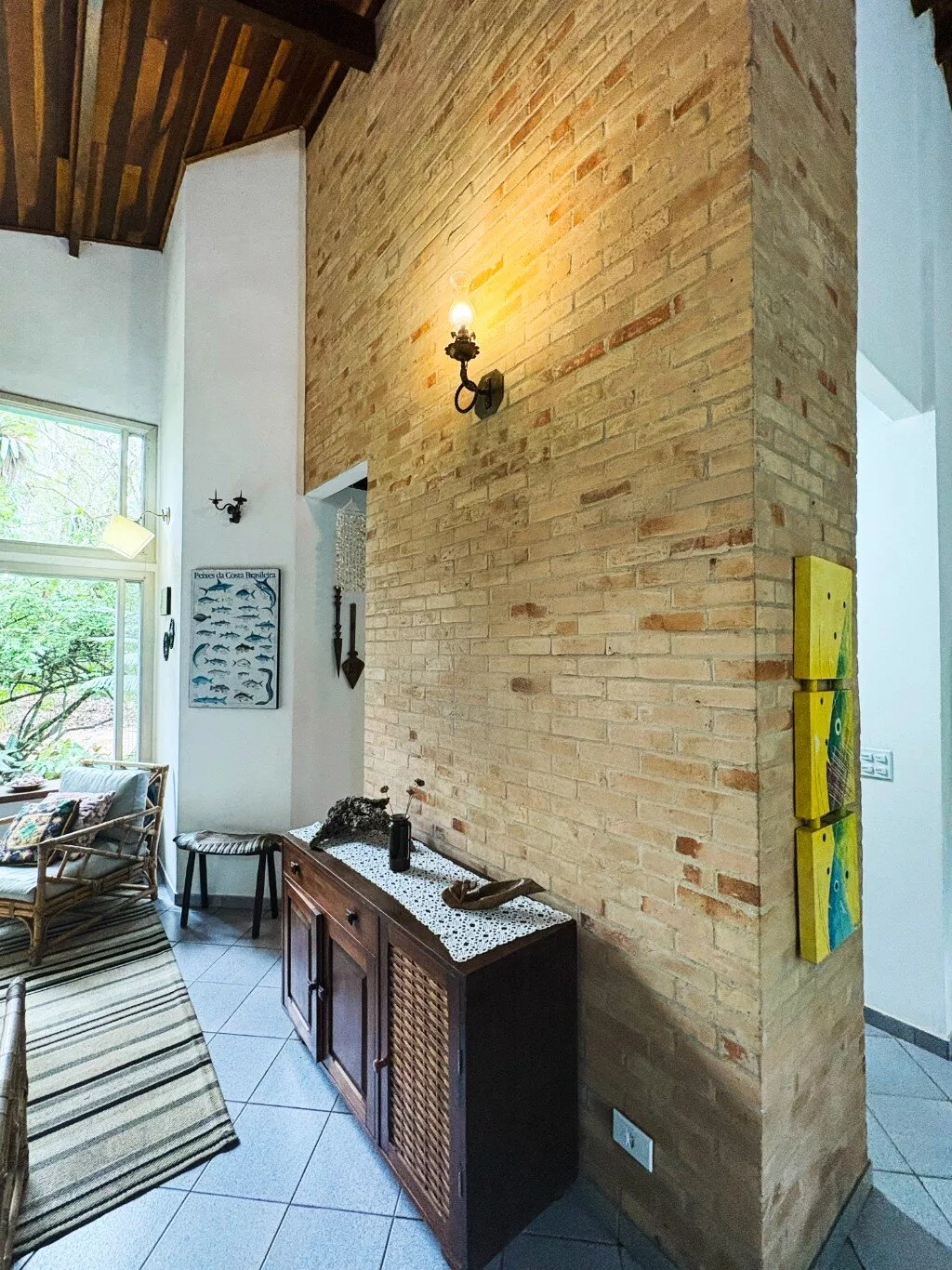 Casa térrea de estilo único, localizada no lado par, em uma região reservada e tranquila. A construção em tijolo à vista, somada às esquadrias em madeira natural, confere elegância, solidez e um charme atemporal ao imóvel.