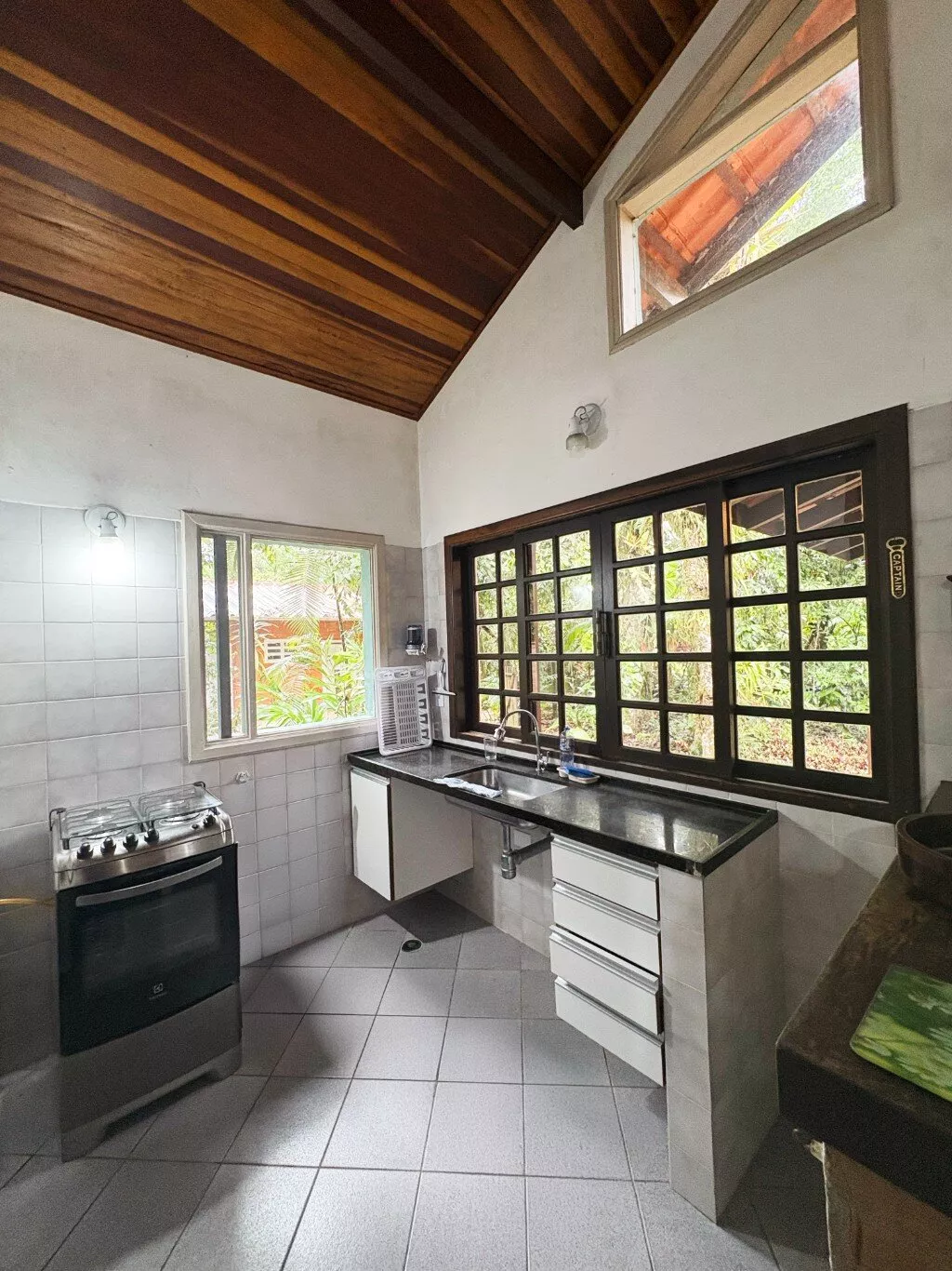 Com 3 dormitórios e 2 banheiros, a casa oferece praticidade e conforto no dia a dia. As amplas janelas de vidro permitem que a iluminação natural e a vista para o verde façam parte da rotina, criando um ambiente integrado à natureza.