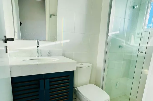 São 2 suítes espaçosas, além de um lavabo elegante que complementa a área social. O imóvel é todo climatizado, garantindo ambientes sempre agradáveis e aconchegantes em qualquer época do ano. A sala integrada amplia a sensação de espaço e se conecta diretamente à varanda gourmet – o verdadeiro destaque do apartamento. Daqui, você contempla uma vista livre e deslumbrante para o mar, perfeita para relaxar no dia a dia ou receber convidados em grande estilo.