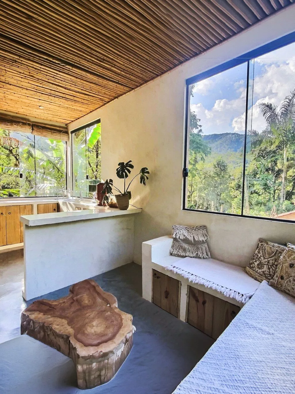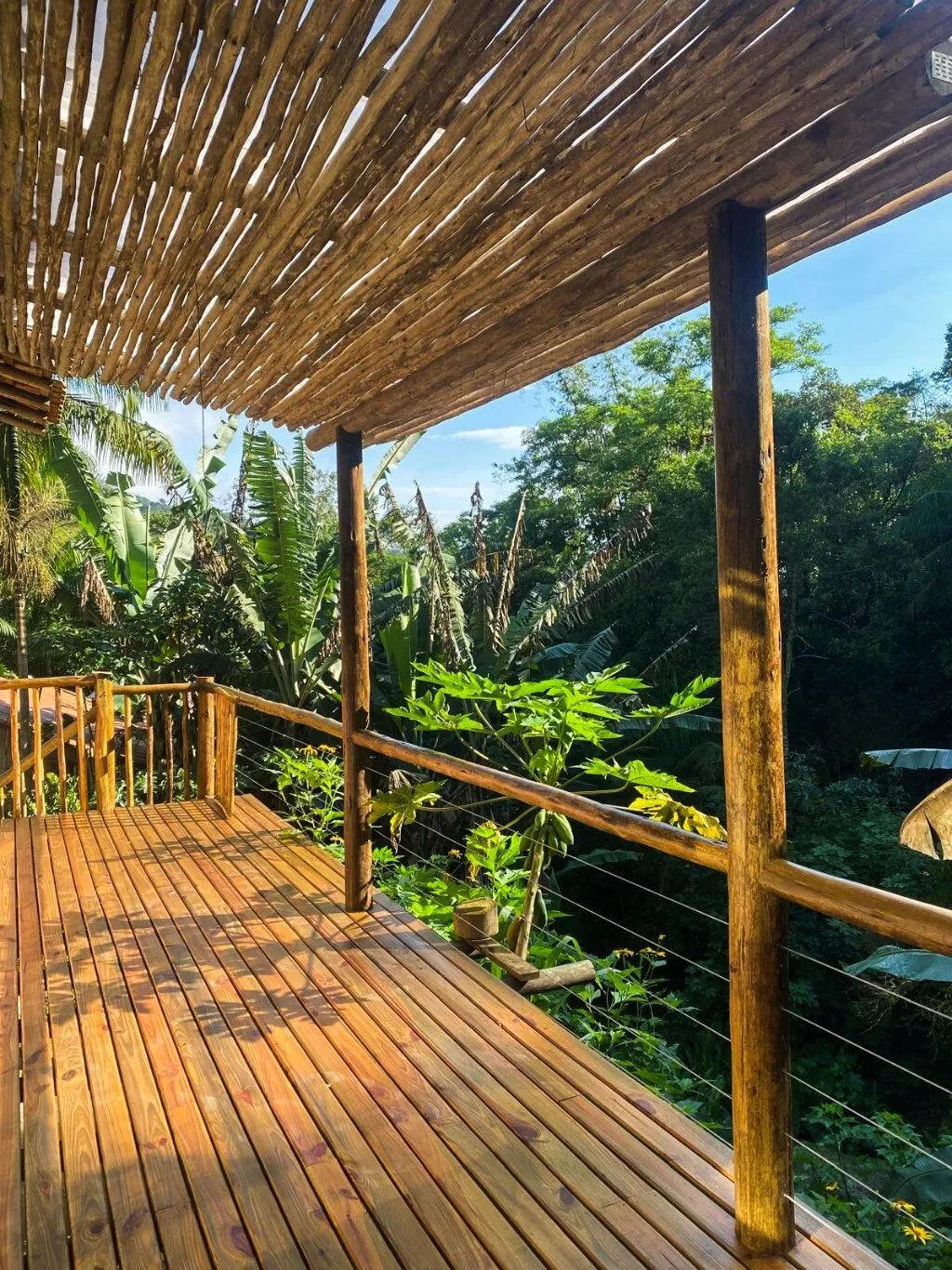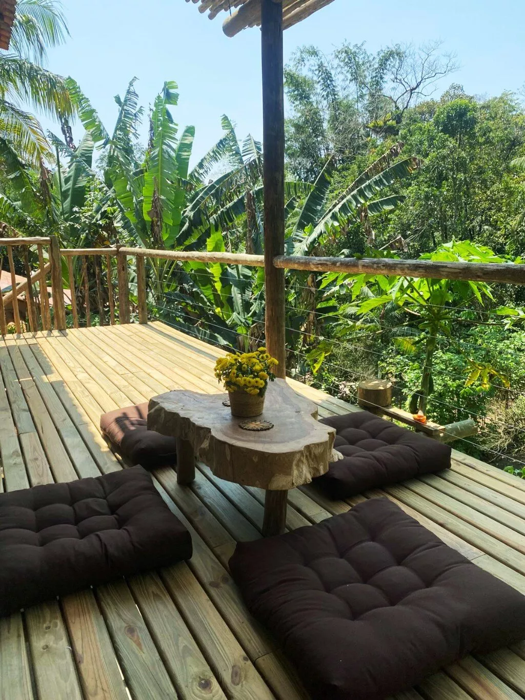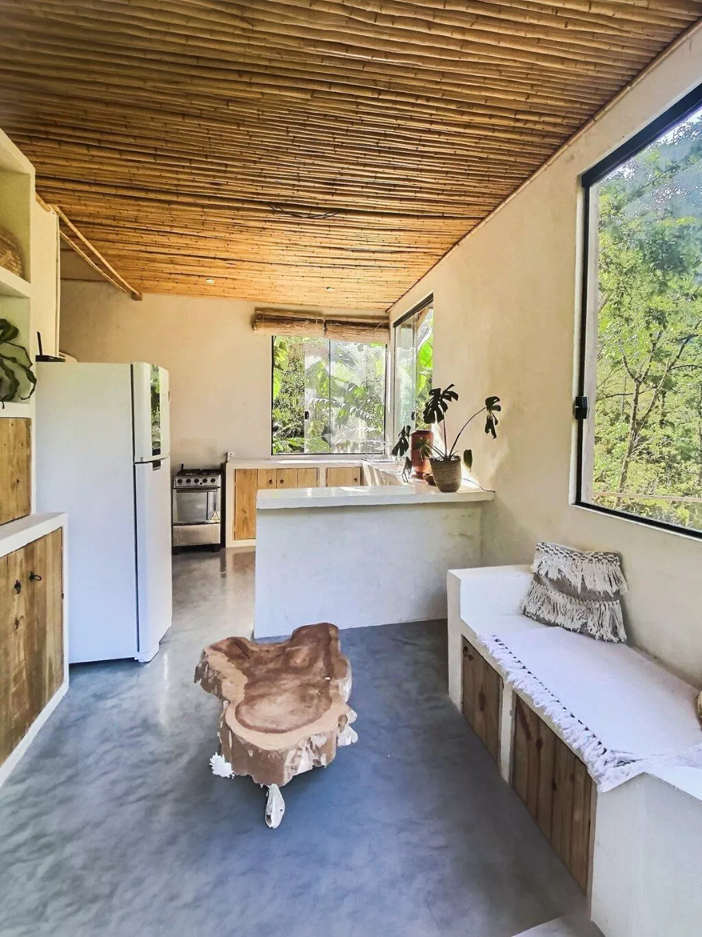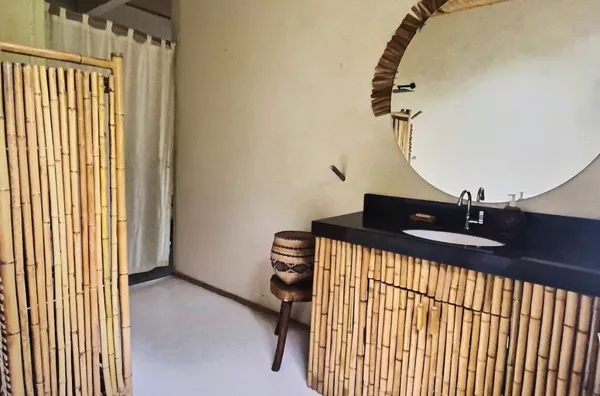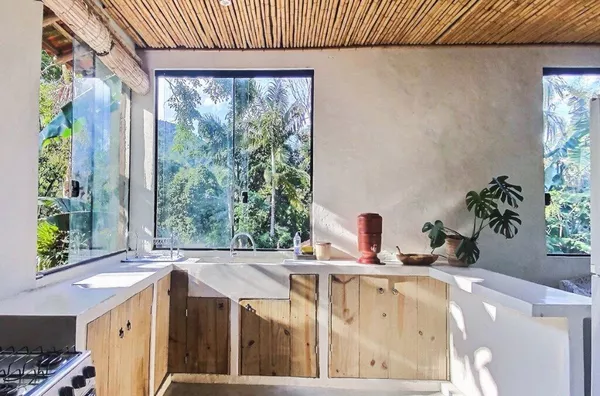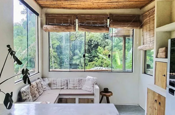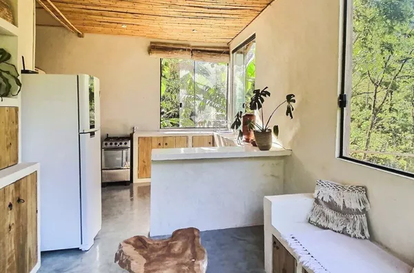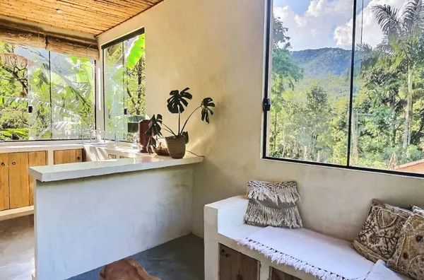 A residência possui aproximadamente 90 m², um quarto, sala, cozinha, banheiro e área de serviço. Conta ainda com uma agradável varanda com deck de madeira, ideal para momentos de contemplação e convivência, integrada à paisagem natural ao redor.