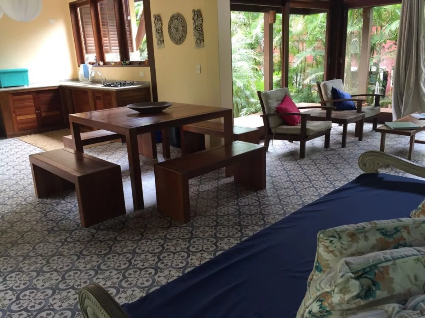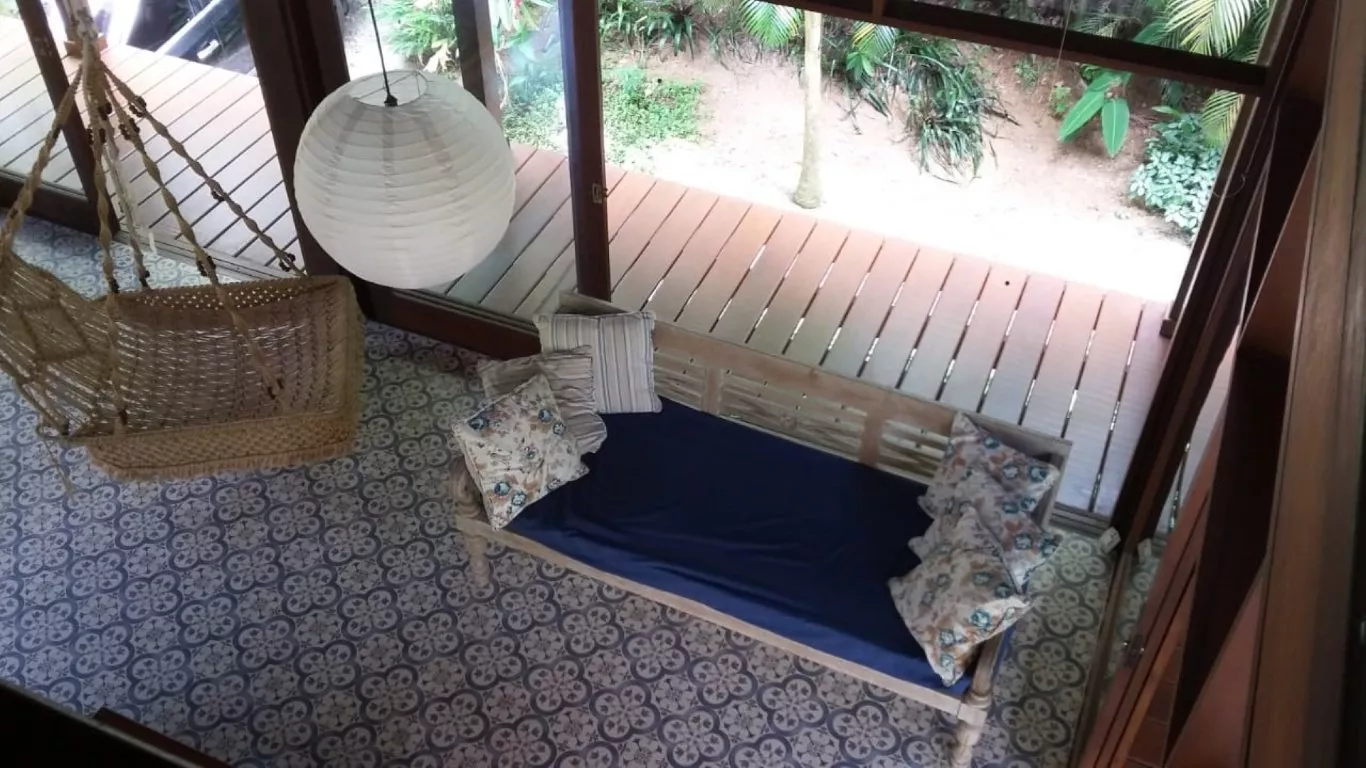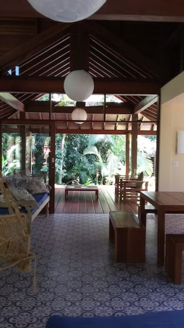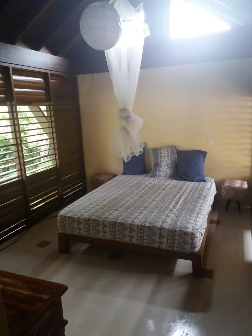 Distância do mar 300 metros casa encantadora com estilo balinês, piso de azulejo hidráulico. persianas de madeira que ser abrem totalmente. excelente circulação de ar, muito iluminada.